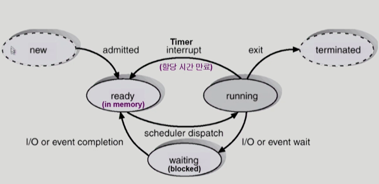 - 프로세스가 생성되면 new 상태에서 ready 상태가 된다.