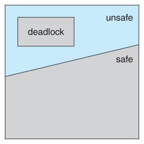 운영 체제는 교착 상태에 빠질 수 있는 가능성이 있는 불안전 상태와 그렇지 않은 안전 상태를 나눈다. 프로세스가 자원을 요청할 때 안전 상태를 유지할 수 있는 요청만 수락하고, 불안전 상태를 초래하는 요청은 거절한다.
