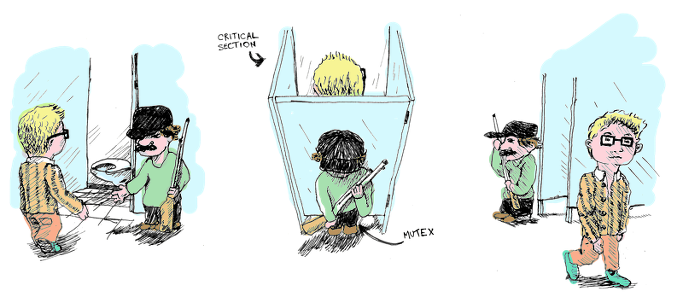 임계 구역을 한 명 씩만 사용할 수 있는 화장실로 표현해보자. 여러 명이 화장실을 가고 싶어할 때 어떻게 처리할까?