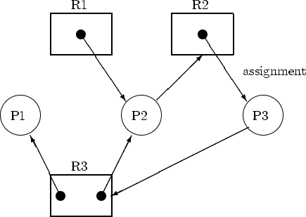 - → 프로세스 j가 보유 중인 자원을 프로세스 i가 기다린다는 의미이다.