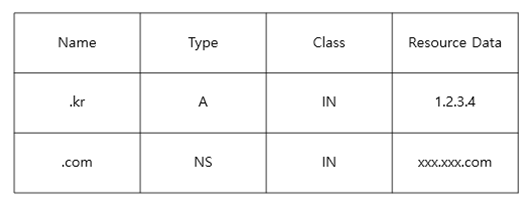 DNS 서버는 데이터베이스 서버의 한 유형이며, 클라이언트로부터 질의를 받았을 때 그에 맞는 데이터를 응답해야 한다. 데이터베이스의 한 항목(Row)을 DNS 서버에서는 리소스 레코드라고 부른다.