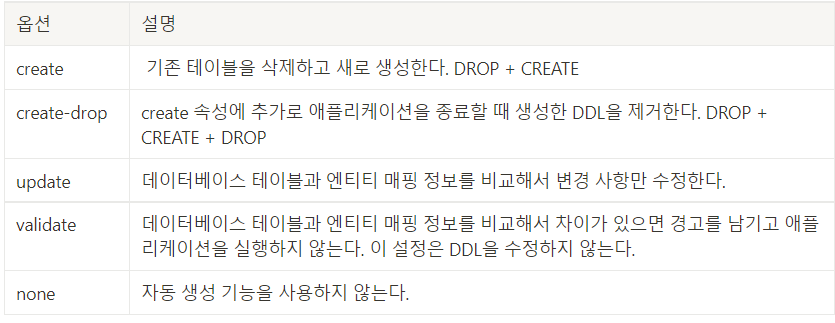 hibernate.hbm2ddl.auto 속성