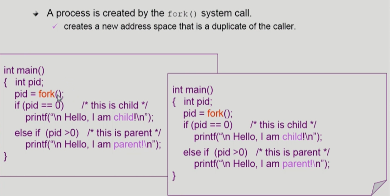 fork()시스템 콜을 제공한다. - 프로세스가 해당 시스템 콜을 호출하면 CPU의 제어권이 커널로 넘어가고, 커널은