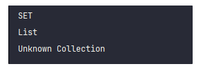 return c instanceof Set ? "SET" : c instanceof List ? "List" : "Unknown Collection";