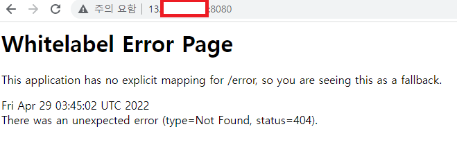 {"timestamp":"2022-04-29T03:38:12.406+00:00","status":404,"error":"Not Found","path":"/"}