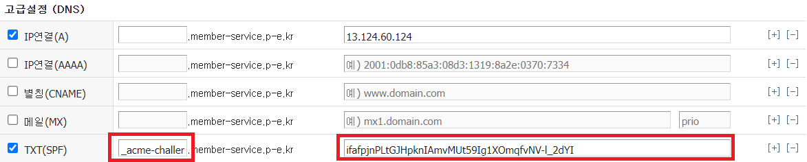_acme-challenge.member-service.p-e.kr with the following value: