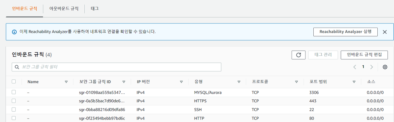 그리고 EC2 보안 그룹의 인바운드 규칙에서 443번 포트를 열어야 합니다. 443번 포트는 HTTPS 프로토콜의 기본 포트입니다.