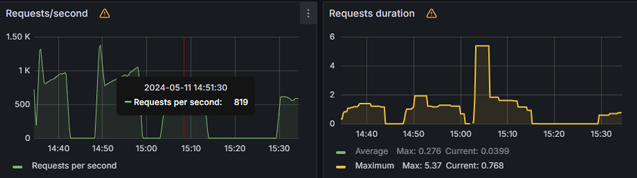다음과 같이 초당 요청 수와 요청의 응답 시간을 확인할 수도 있습니다. 그리고 이 응답 시간을 줄이는 것이 부하 테스트의 최대 목표입니다!