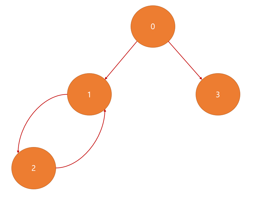 저는 단순히 0과 1 도시 사이의 사이클이 발생하는 식으로, 2개의 도시 사이에서만 사이클이 발생한다고 생각하였는데 수많은 도시 사이에서 순차적으로 사이클이 발생할 수 있다는 사실을 간과하였습니다.